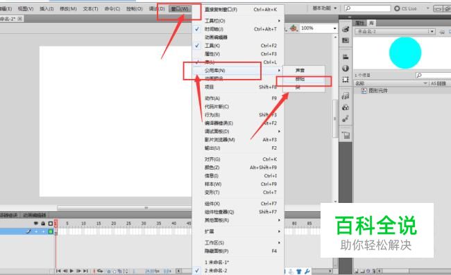 创建按钮元件的方法1 点击Flash菜单栏中的【窗口】,在下拉菜单中点击【公用库】,然后选择【按钮】,会弹出一个按钮窗口,里面有很多系统给定的按钮,还可以预览,要是觉得好看的话可以直接拉到舞台上使用。在【库】中同样会出现这些按钮。