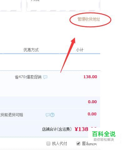 付款的时候填写我们要送的对象的地址就可以了,在右侧点击“管理收货地址”。