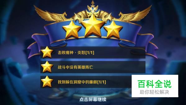 根据游戏的设置,玩家三星通过此剧情副本需要同时达到三个条件,分别是击败BOSS魔种炎怒、战斗中没有英雄阵亡、找到洞窟中的廉颇。