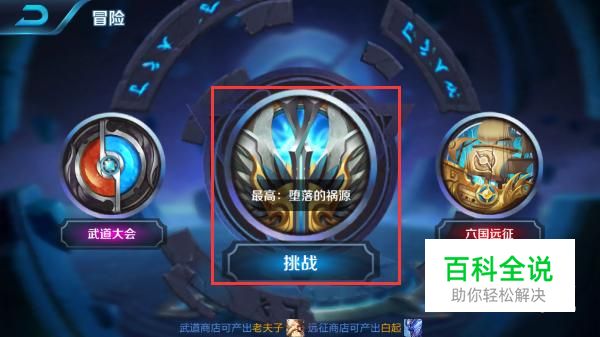 要想三星通过王者荣耀堕落祸源大师红莲之窟的剧情副本,首先我们先了解到此剧情副本的出处。具体操作是点击游戏页面中的“冒险模式”,接着点击“挑战”。