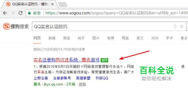 搜索关键字QQ防沉迷,点击进入QQ防沉迷官网。