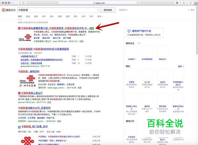 进入搜狗浏览器,搜索“中国联通”