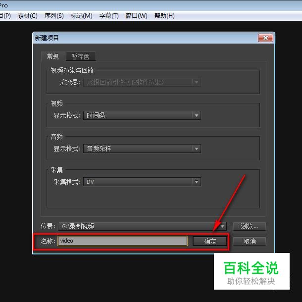 接着在项目创建面板这里设置好项目的名称,这里我就随意的取了一个,然后点击“确定”按钮就可以新建成功了。