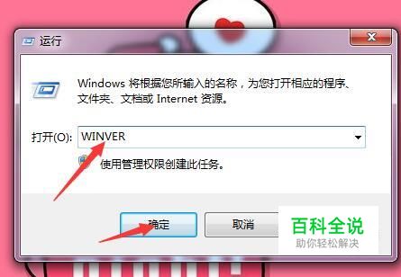 在运行框中输入“WINVER”,点击“确定”,最后就出现“关于Windows”对话框了,查看详细的Windows版本号了。