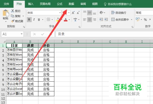 如下图所示,选中第一行,直接到数据选项中。
