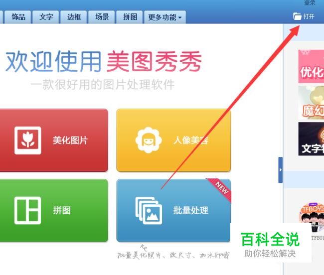 打开美图秀秀软件,点击页面右上方的额“打开选项”