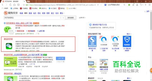 第二个方法是下载客户端版的微信。搜狗搜索上搜索“微信”