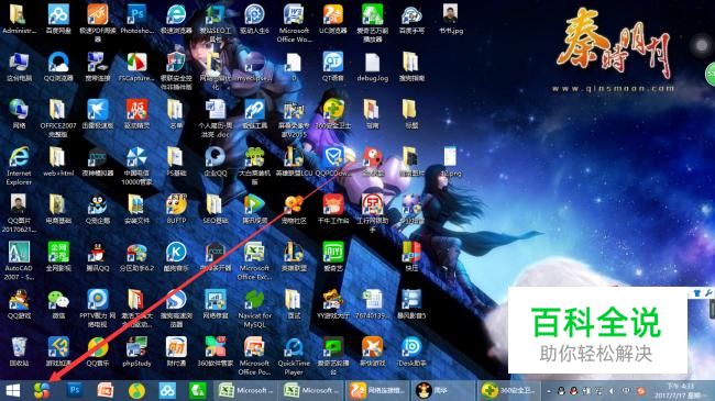 唤醒我们的电脑,在电脑左下方找到Windows按钮,鼠标点击进入。