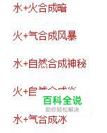 变身公式:初始形态:光、风、水、火、自然。合成形态:水加火合成黑暗,火加风合成风暴,水加自然合成神秘,火加自然合成炎,水加气合成冰。