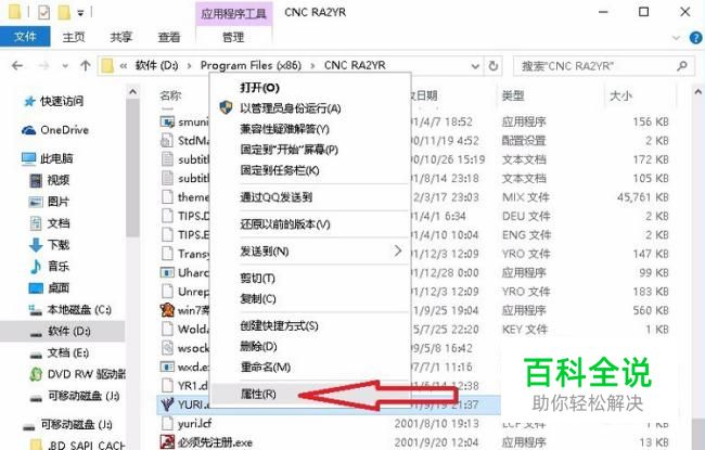 首先在安装目录下找到游戏的EXE文件,用鼠标右键单击,并选择属性。