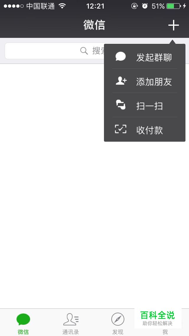 打开“微信”,点击右上角的“+”。