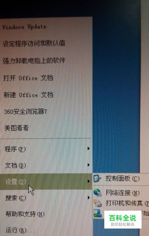 点击电脑左下方:“开始”---“设置”---“控制面板” or直接电脑桌面上的:“我的电脑”---点击左侧其他位置下的:“控制面板“。 打开控制面板。