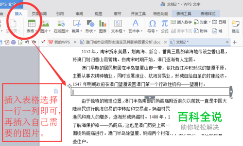 首先,打开word文档,如图所示,选择“插入”——“表格”(如果是一张图片就选择一行一列就可以了)。