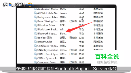 在弹出的服务窗口找到Bluetooth Support Service服务,点击启动。