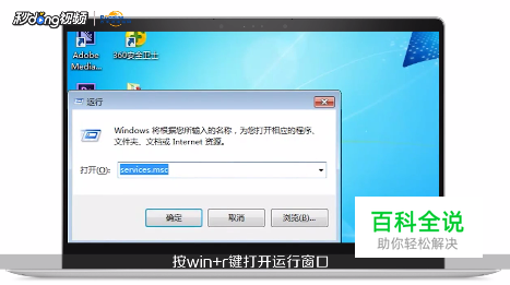 按win+r键打开运行窗口,输入services.msc,点击确定。