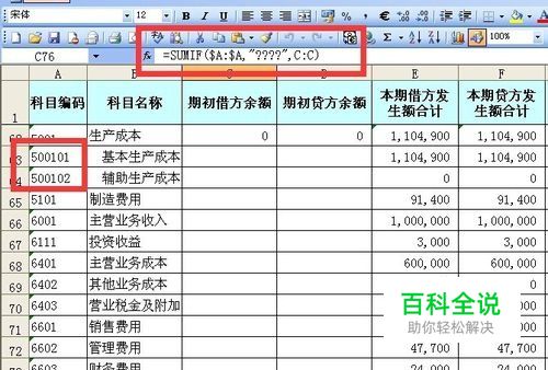 函数的原理是从A列中挑选出4位的会计科目编码 也就是总账科目编码 同时在第三列和第四列分别找到对应的余额 求出总账科目所有借方的余额 和贷方的余额 左边红框括起来的事不符合四位数的明细科目编码