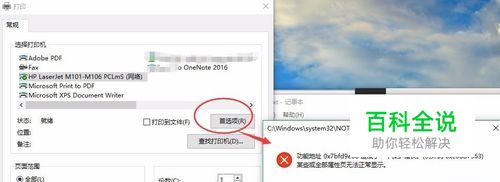 装在win10 _ 64位家庭版电脑上,正常可以打印,但是突然发现不能打开word文档、JPG格式、PDF文档打印阅览时,旁边的“打印机属性”无法打开了,以及记事本,打印“首选项”也点不开,点开就提示