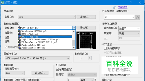 在图纸尺寸中选择最大的尺寸,我这里是36*48英寸