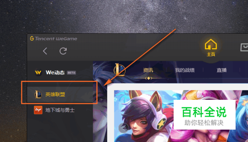 打开wegame,然后点击左边的菜单中的英雄联盟