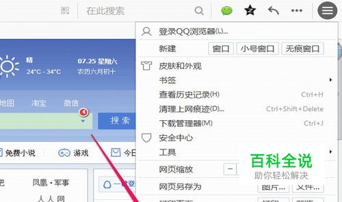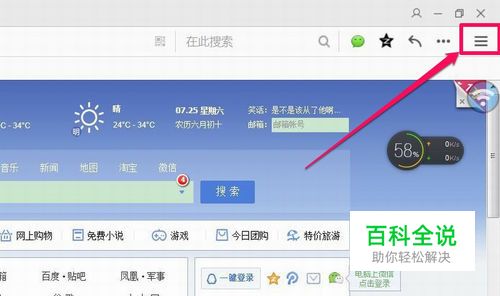 我这个朋友出现问题时,用的是QQ浏览器,后来用IE试着登录,也登录不了,那就先查查QQ浏览器吧。 在浏览器的右上角,在一个“三”的主菜单图标,点击一下。
