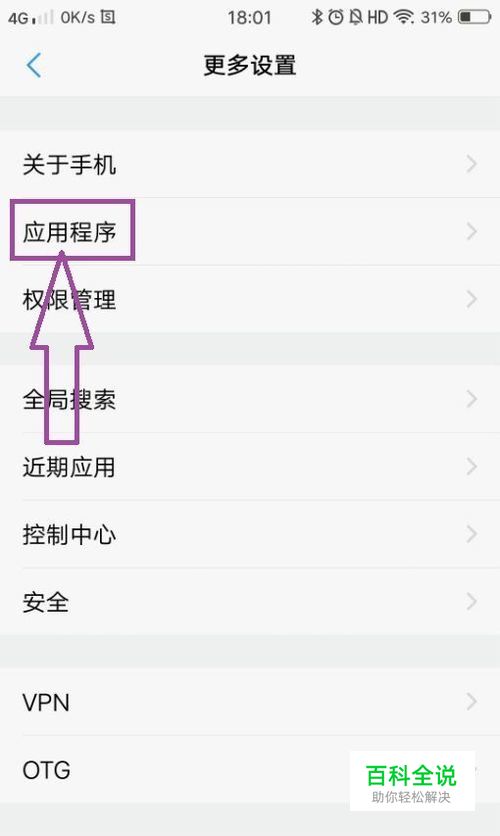 点击进入到“更多设置页面”,在页面上可以找到“应用程序”,