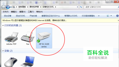 进行扫描前,首先把带扫描的文件放在一体机的扫描面板上,然后点击开始菜单--->设备和打印机,此时可以看到已安装的HP一体机。