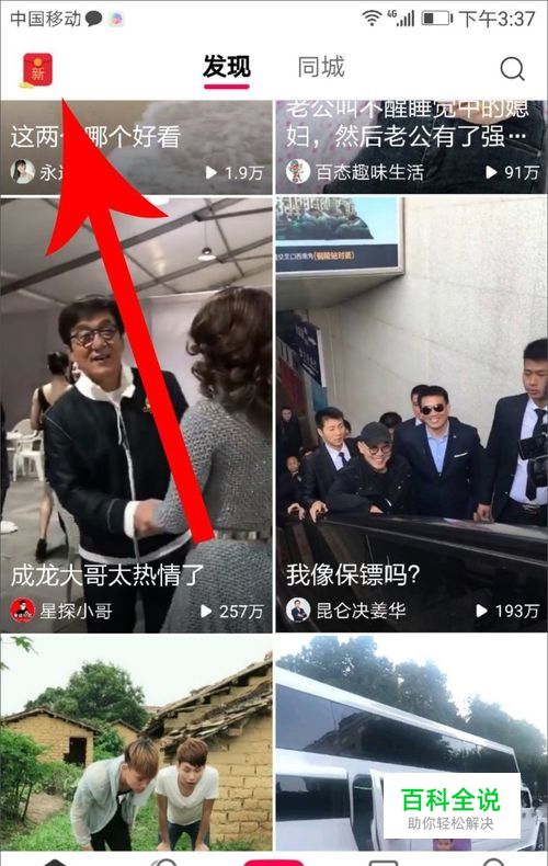 打开全民小视频后,先不要去点击其他位置,在默认打开界面点击左上角的红色小红包图标
