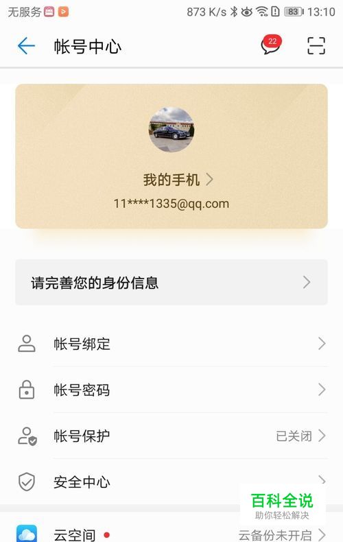 首先打开手机中的设置功能,在设置中找到自己的帐户信息,如下图所示。