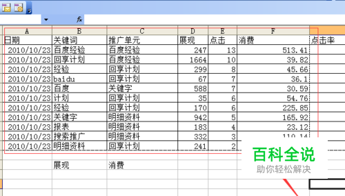 在电脑中打开了一个excel的表格的数据,那么表格的数据中,就会有存在着不需要打印的内容,首先先选中表格中区域中表格中内容。