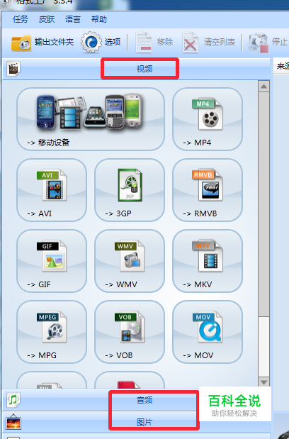 在左侧目录里,我们可以看到“视频”、“音频”、“图片”等菜单选项。