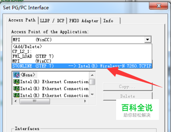 2、在“Set PG/PC Interface”对话框中选择访问点,如图所示。