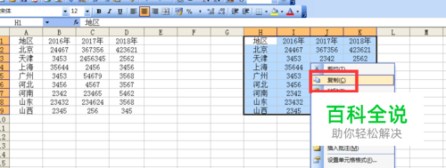 先把后面的表复制一下。选中表右击复制。