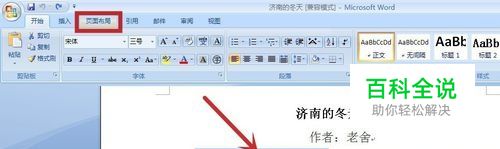 使用鼠标左键拖选相应的文字(图中红色箭头所指)后,点击顶端的“页面布局”选项卡(图中红框)