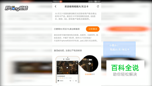 点击“wo+腾讯视频流量包月”,点击“立即激活”。