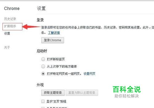 进入设置页面后,点一下左边第二个扩展程序;