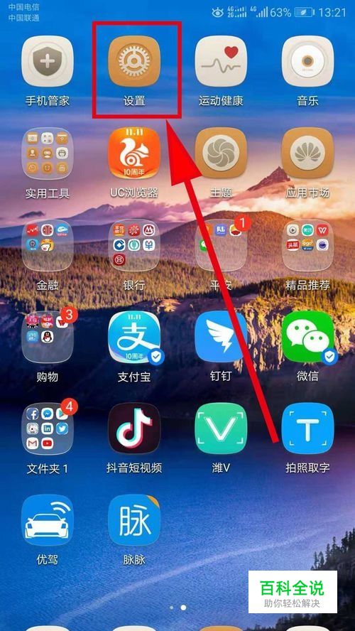 首先,打开手机桌面,找到“设置”