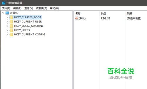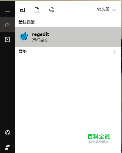 在Cortana搜索框处输入regedit打开注册表编辑器