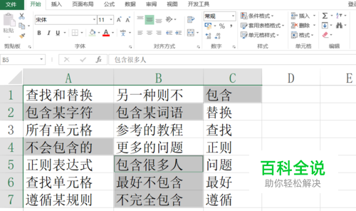 不使用正则表达式--Excel查找包含某字符或某词语的所有单元格
