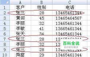 如果只有“客户”是一样,“性别”和“电话”等都不同,则列表区域选中”姓名”字段所在的区域A1:A12单元格,其他操作如上面 需要提醒的是,这种情况下,通过“高级筛选”保留的是最前面的那个记录。