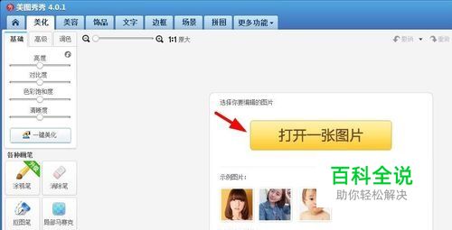 第一步:在美图秀秀主界面单击“打开一张图片”按钮。