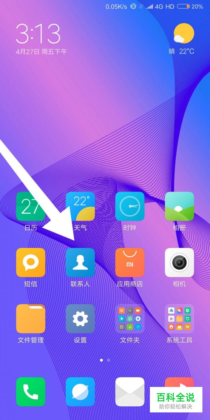 首先我们进入小米手机的“联系人”APP。