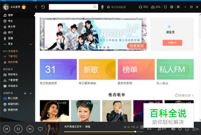 在网上搜索“酷我音乐”下载安装,过程很简单就不细说了。打开软件后主界面是这样的,这个软件下载歌曲不需要先注册,这是它的优点。