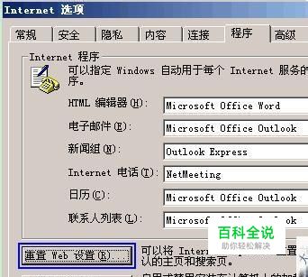 切换到“程序”选项卡,点击“重置Web设置”。这样就可以解决问题了。 二、针对软件的设置 如果是打开excel出现此类问题,就使用如下方法。 excel中工具 --> 选项 --> 编辑中的“用ctrl+点击跟踪超链接”处于选中状态,excel工具 --> 选项--> 校对--> 自动更正选项--> 单击“键入时自动套用格式”选项卡,勾选“Internet 及网络路径替换为超级链接”复选框。
