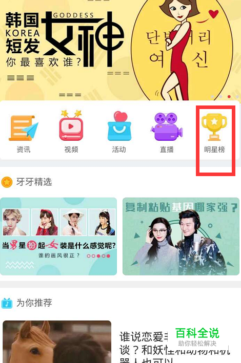 1、在牙牙关注首页,进入明星魅力榜