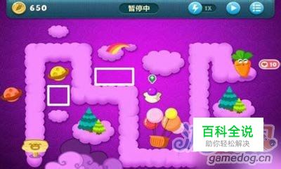 保卫萝卜天际主题第4关开局,金钱650,玩家要在白色方框内建造3个魔法球炮塔(如上图所示)。