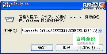 忽略用户设置启动Word 使用/a 命令开关可以忽略用户设置(即不加载数据注册表子项)启动Word程序,操作步骤如下所诉: 第1步,依次单击“开始”“运行”,打开“运行”对话框。然后单击“浏览”按钮,找到选中程序“WinWord.exe”,然后单击“打开”按钮,如图1所示。 图1 查找WinWord.exe程序 第2步,在“打开”编辑框中的命令行最后输入/a命令开关,并单击“确定”按钮即可启动Word,如图2所示。 图2 输入/a命令开关