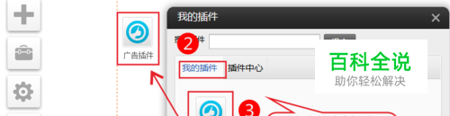1、依次点击插件-我的插件-选中“广告插件”插件拖拽到您需要的位置。(如果“我的插件”中没有,请到插件中心选启用)