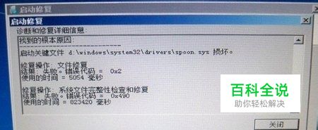 电脑一直使用的win7系统,今天开机的时候突然开不开机了,直接进入了系统自动修复模式,小编就使用了系统修复,却发现根本无法修复,系统一直进不去。这时候是不是大家想到重装系统了呢?其实大可不用,一起来看看小编怎么解决的吧。 1.在系统修复的时候检测出来的是d:\Windows\system32\drivers\spoon.sys文件报错。2.重启按住F8进入系统高级选项模式,然后选择最后一次正确配置恢复系统。3.正常进入系统后选择报错文件删除即可。4.如果无法进入的话,则进入带命令提示符的安全模式下,在命令提示符中输入del X:\windows\system32\Drivers\spoon.sys 命令删除报错文件即可。