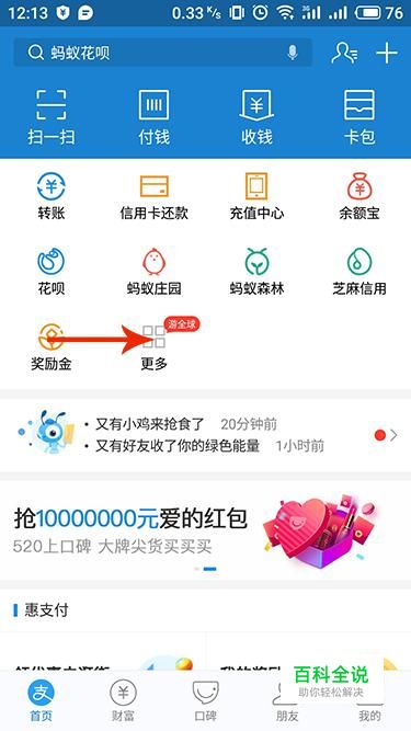 进入支付宝APP界面,点击上方“更多”进入。