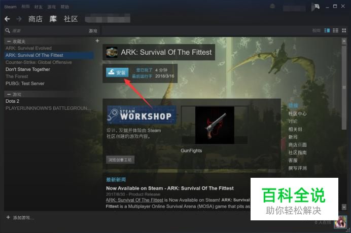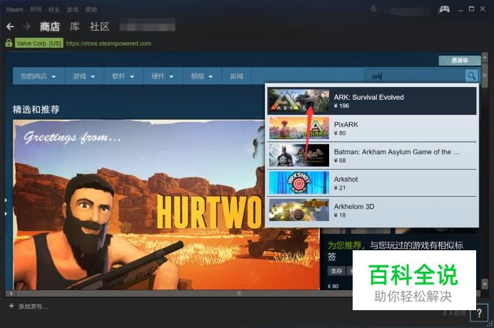 在搜索出搜索方舟的英文名ARK,点击进入页面。